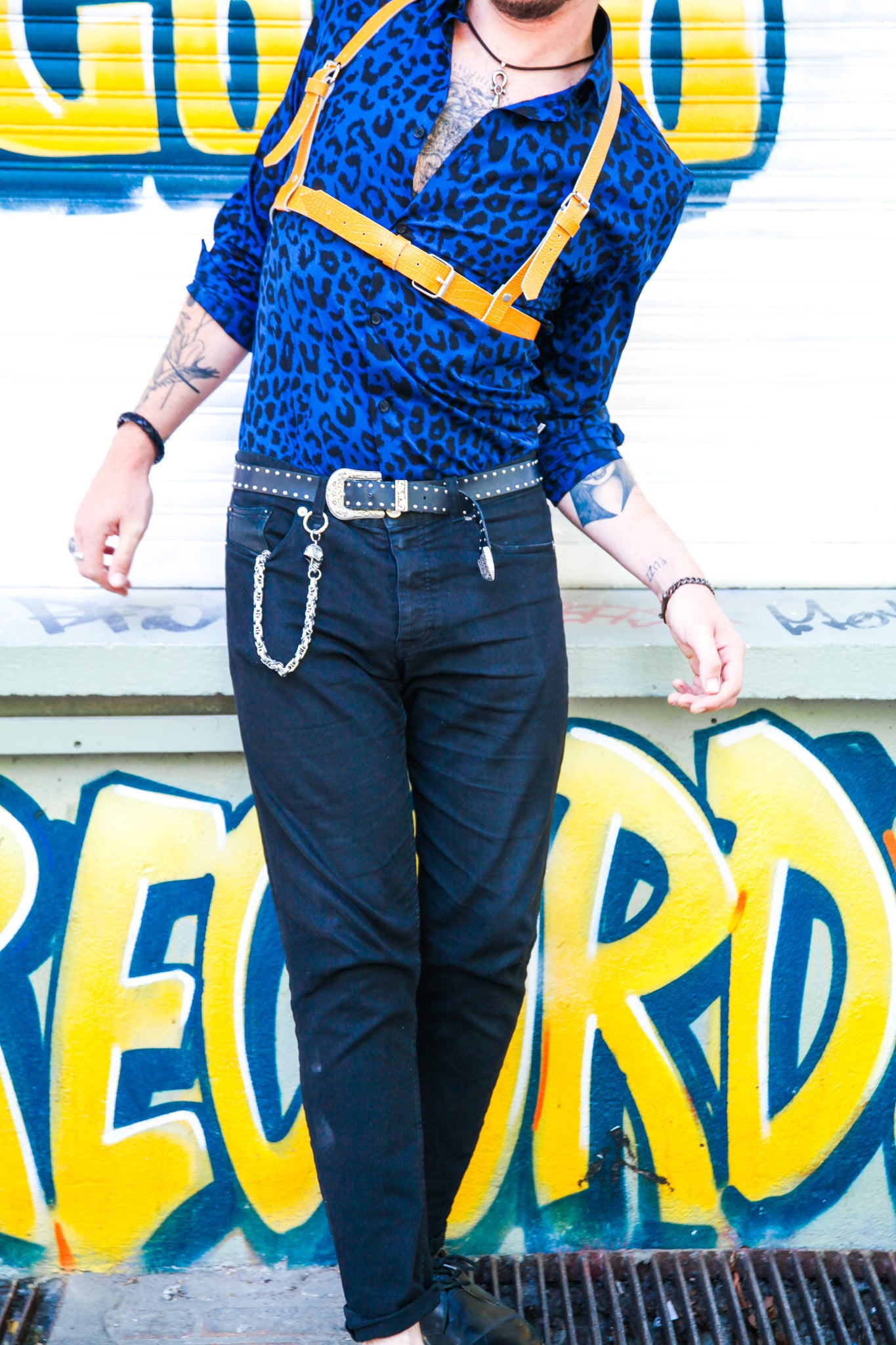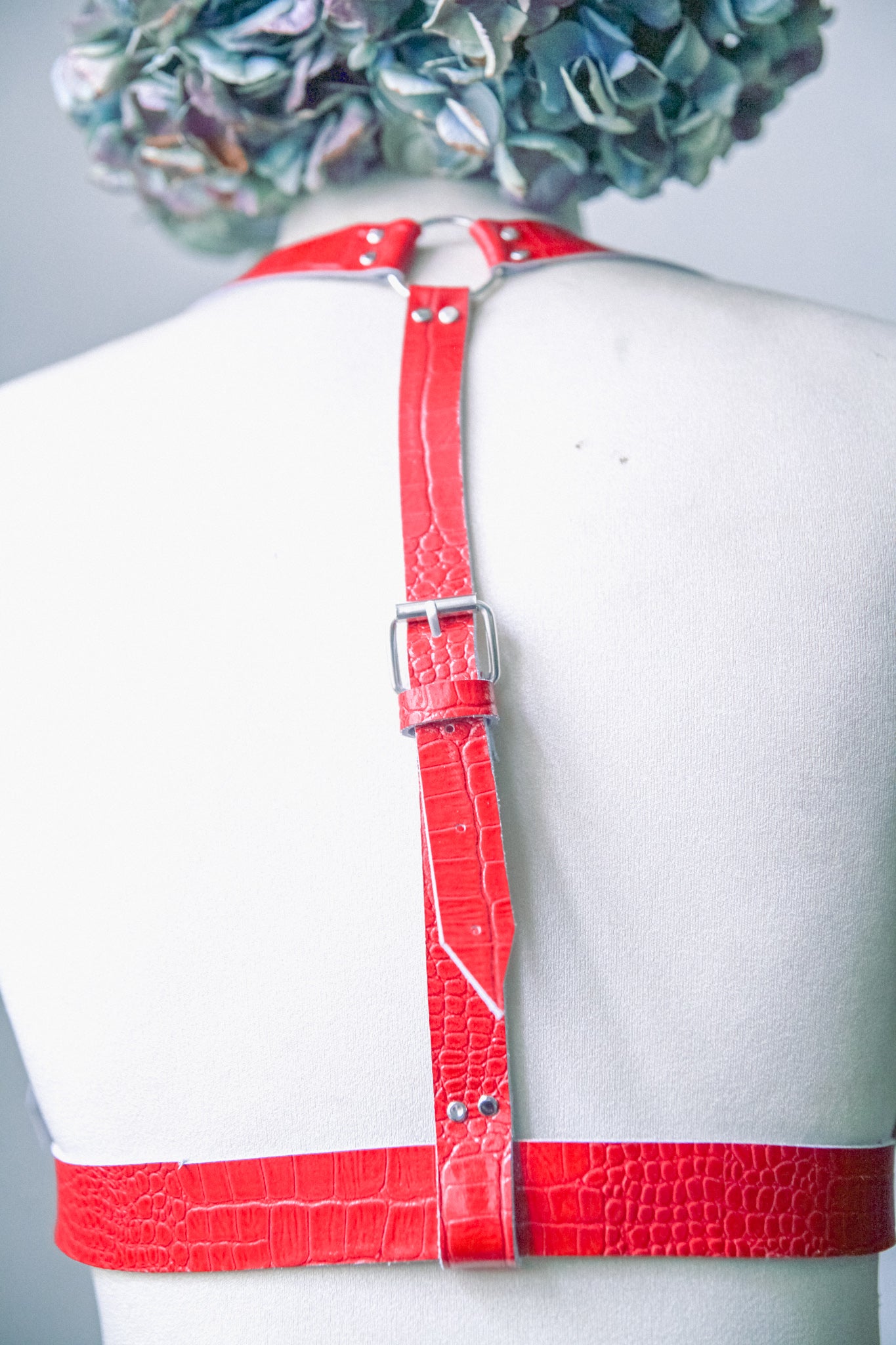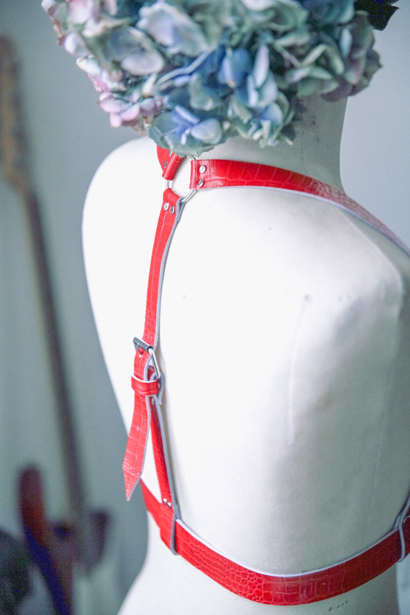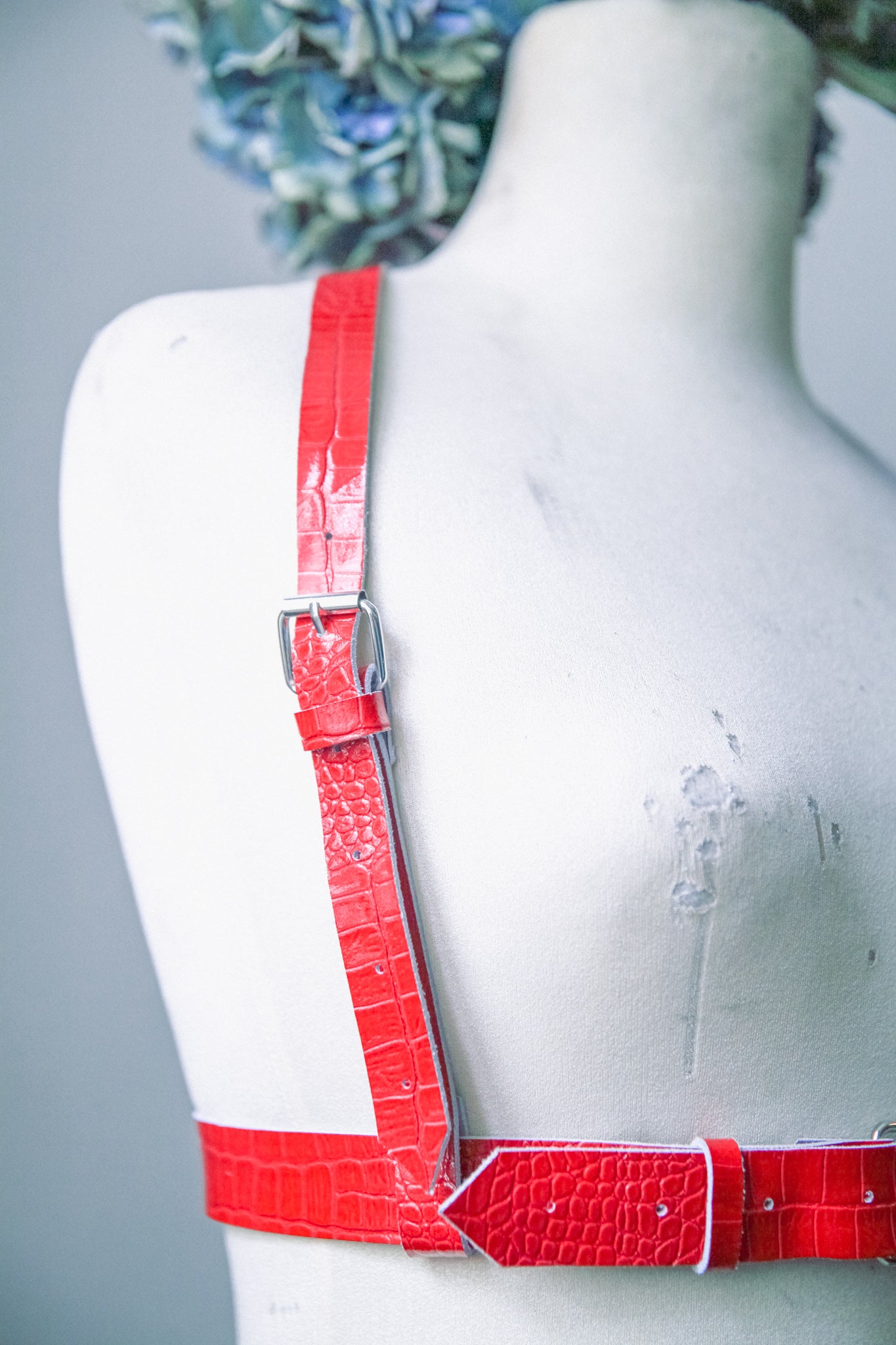 With croc embossing. Silver-colored stainless steel o-rings, rivets and buckle. Very thick leather 2.5-3.5 mm.